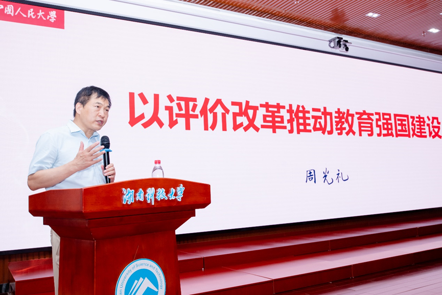 开学典礼结束后,教育部“长江学者”特聘教授、中国人民大学教育学院院长周光礼教授带来了题为“以评价改革推动教育强国建设”的首场学术报告,报告由郭时印主持。