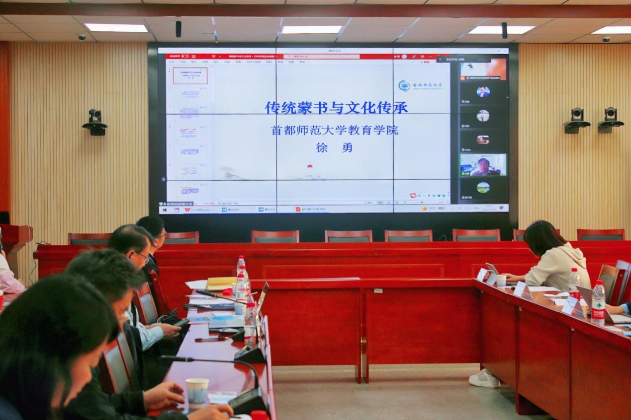 首都师范大学徐勇教授作了题为“传统蒙书与文化传承”的报告。他从蒙书不只是影响一个人的童年、蒙书不只是影响了学童、蒙书影响着最多最大的群体等三方面展开论述。他指出,传统蒙学和蒙书的研究,就是要了解历代启蒙教育的情况,了解中国的历史和文化,了解中国人身上的文化基因。他强调,在中国文化传承过程中,蒙书起到了至关重要的作用,增进了民族文化的认同。