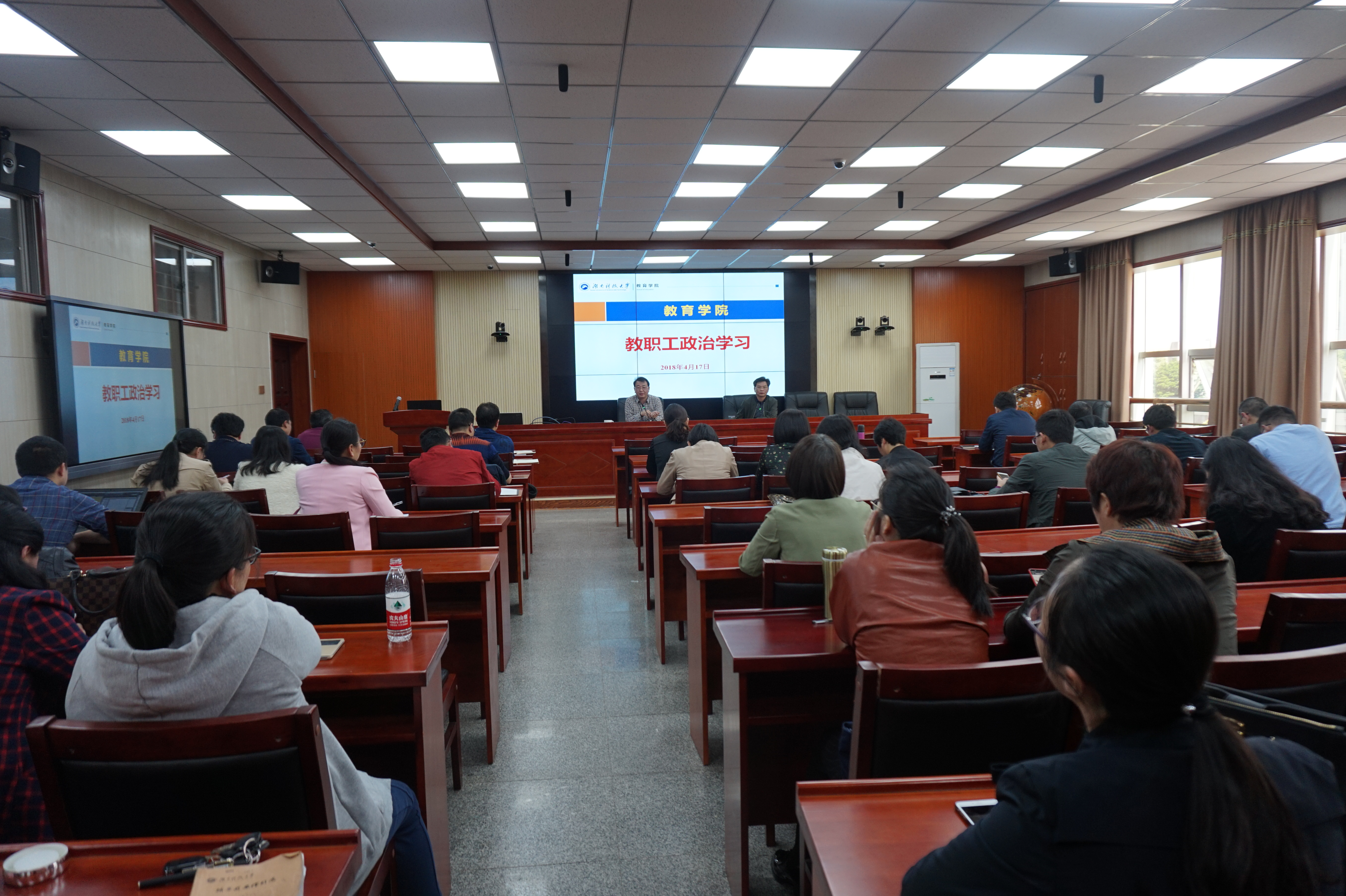 为进一步认真贯彻落实学校党建与思想政治工作会议精神,结合我院实际情况,院党委以“围绕中心抓党建,抓好党建促发展”的基本理念,聚焦学院学科建设重点工作, 于2018年4月17日下午,院党委书记李炳煌教授在八教308会议室主讲题为《联系实际 凝神聚力 全面推进学科建设和专业发展》专题党课,党课学习由院长李海萍教授主持,学院全体教职工参与学习。