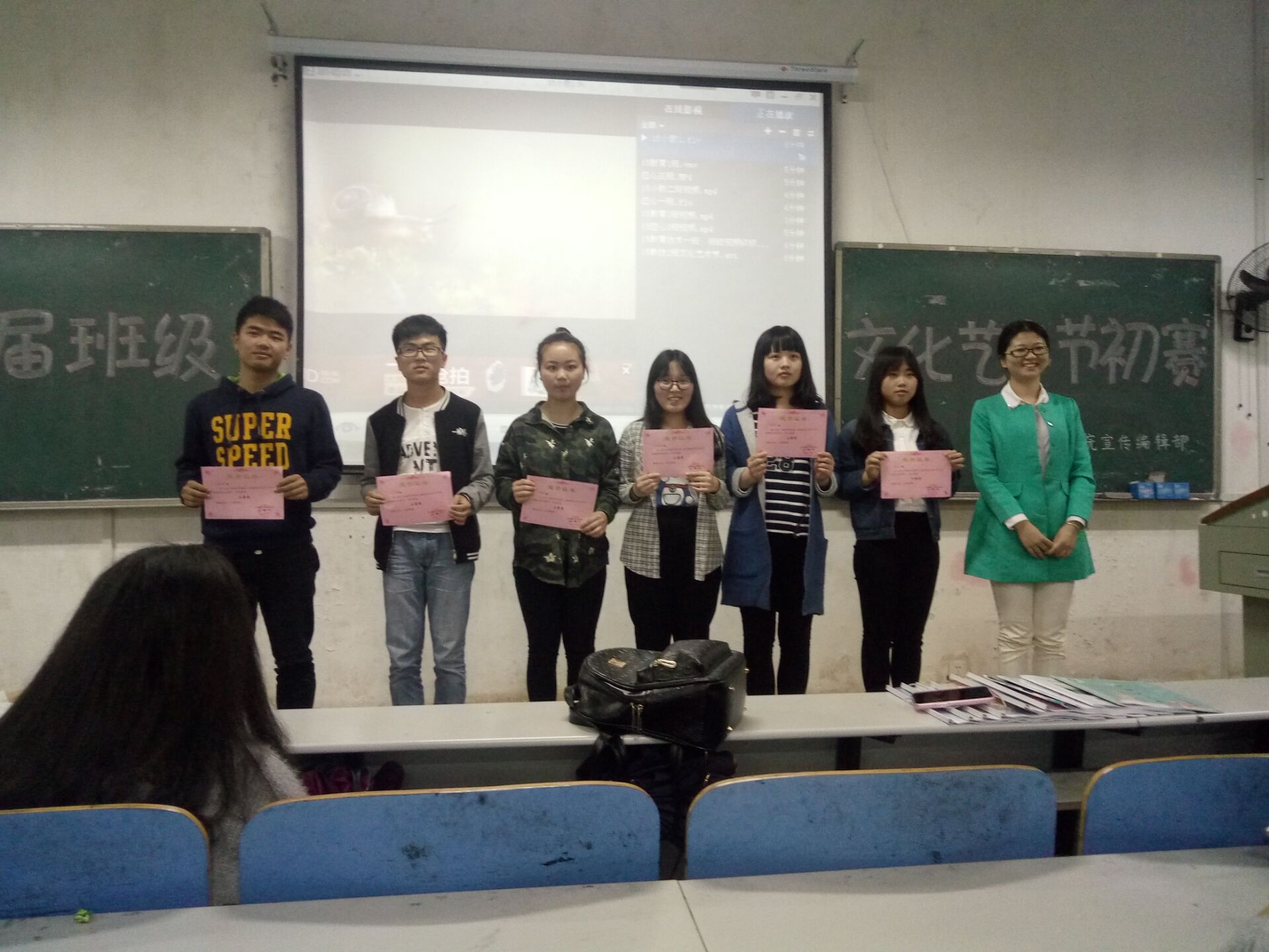 2016年4月26日14:00,教育学院第二届班级文化艺术节初赛之班级特**评比暨颁奖仪式在八教1-6正式举行。出席初赛的嘉宾有教育学院学工办老师李涛,教育学院团委学生会第一副书记徐春菊。各班围绕着“畅想青春主旋律,展现活力新班级”这一主题,通过在视频中展示班级合照,班级活动剪辑等,把班级最美的一面展现出来。