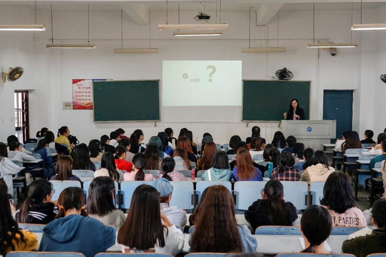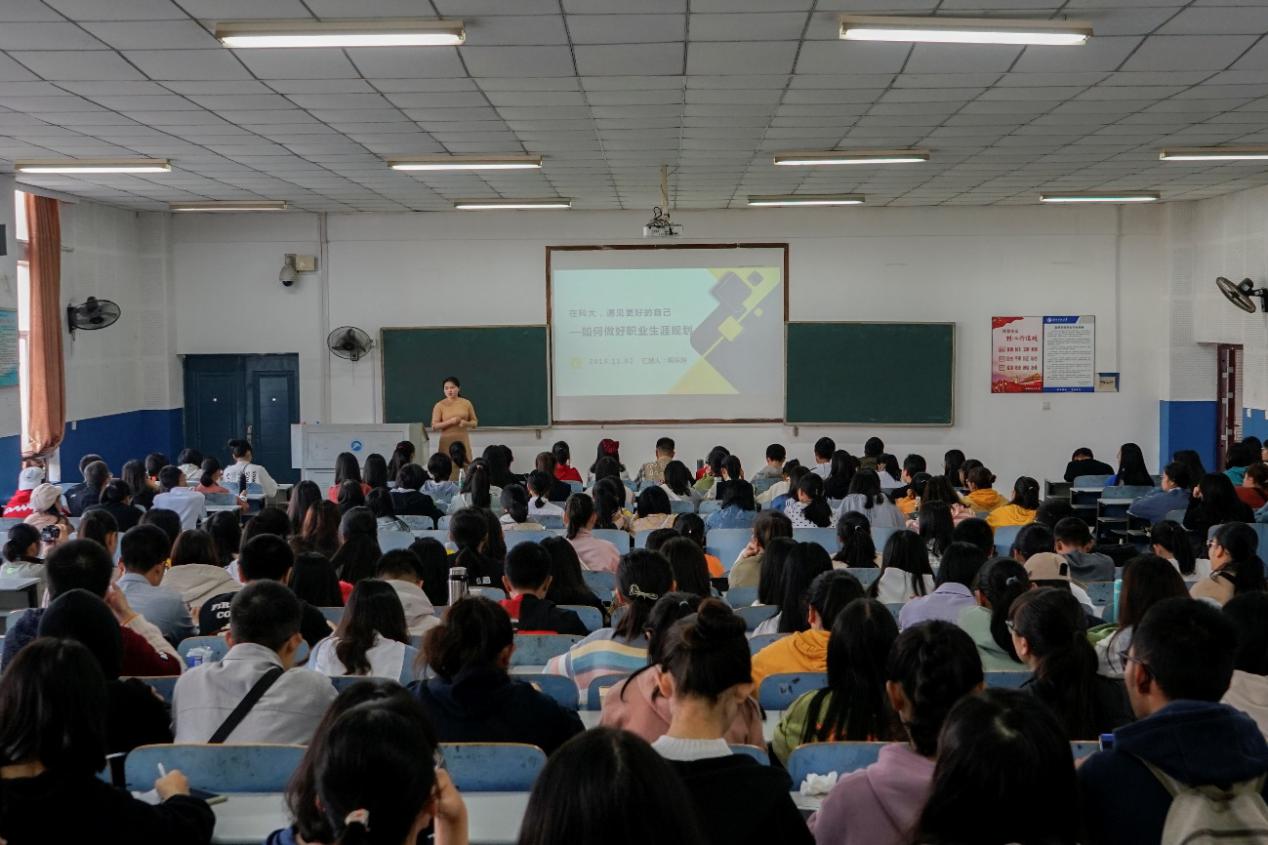 “我是谁?我想成为谁?如何成长为更好的自己?”讲座中,程燕以“自我VS成长—奋斗的青春最美丽”为题结合自己的学习和生活经历进行讲解。通过一分钟鼓掌次数的小实验程燕让同学们自己预测次数与实际次数比较她希望同学们能够真正了解自己认识自己再超越自己,不要被所谓的标签限制。“同一专业可以从事很多种不同的职业,相对于专业知识技能,用人单位更看重综合素质。”在介绍自己同学不同领域的发展后,程燕强调,你的专业不会限制你,不管你以后想要去从事什么领域,坚持向上努力,才是王道。她希望同学们不管对学校专业是否满意,都应该用自己的方式去做好,努力达到立足现实、扬长避短的目标