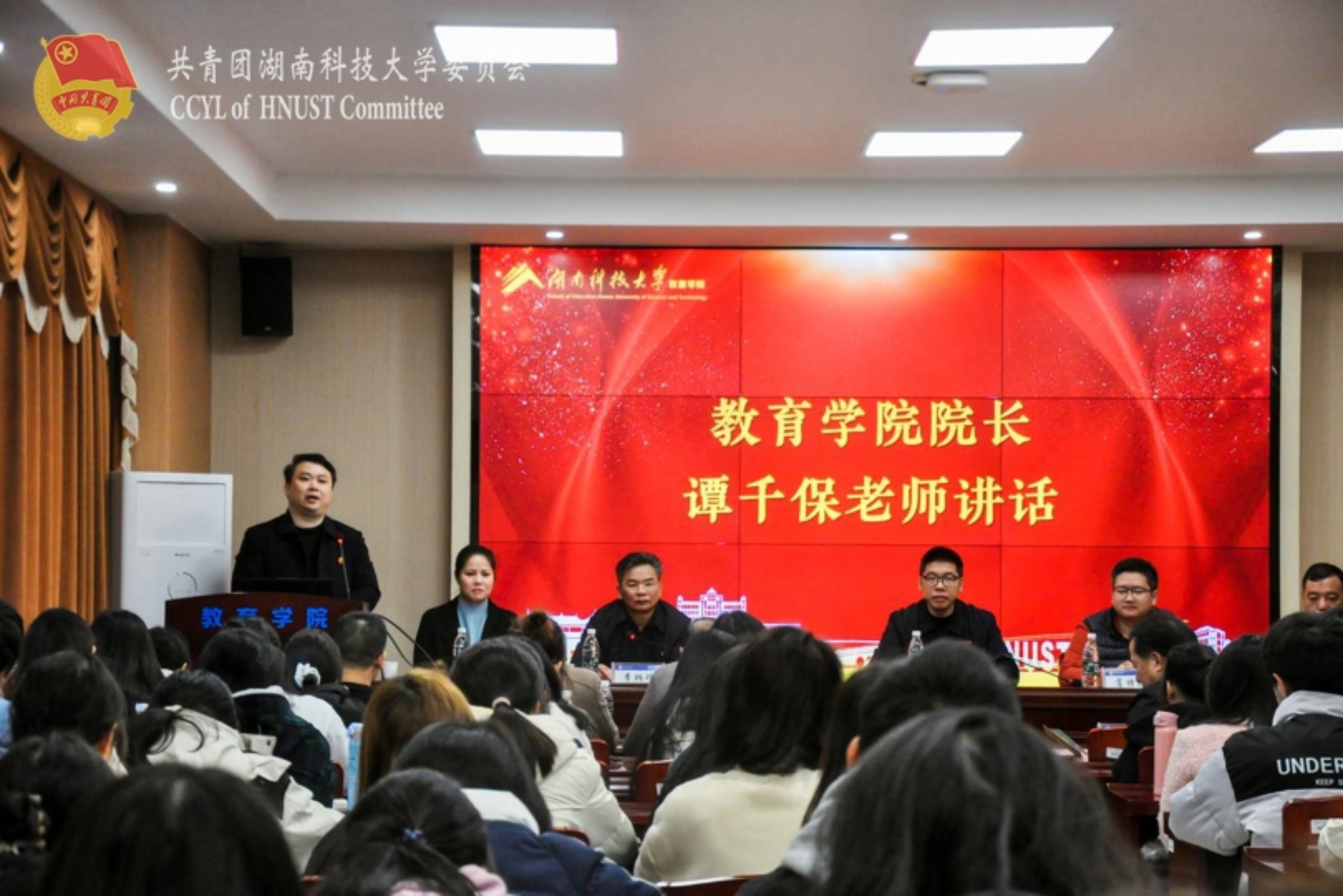教育学院院长谭千保代表学院感谢各位校友的鼎力支持。他谈道,“敏行育人基金”与“特强奖学金”是在校生、校友、学院共同成长的承载点,也是优秀校友情系母院、回馈母院的典范,具有重要的榜样示范作用。