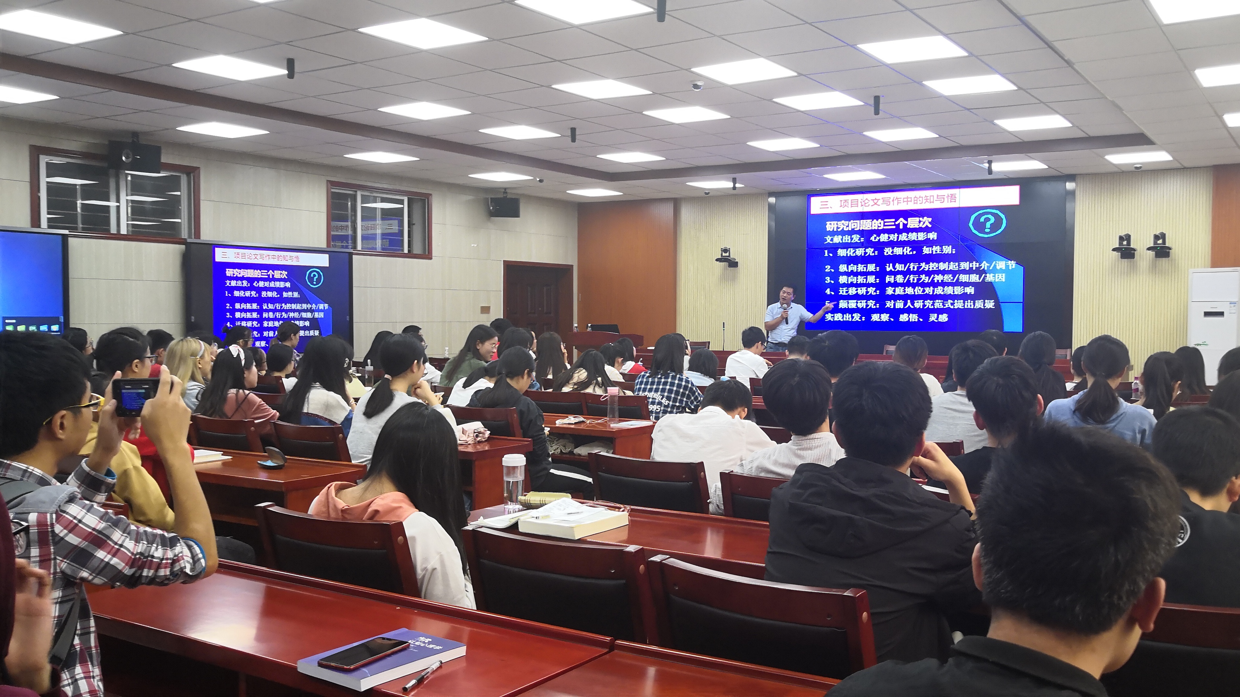 讲座首先从心理学专业角度出发,对心理学研究设计与研究工具中的常见困惑进行了专业性的剖析与解答。接着,强调了项目论文写作中的知与悟,为在座同学提供了论文写作研究的开拓性的思路。向燕辉谈到在项目论文写作中研究问题具有多个层次,如从文献出发,做到细化研究、纵向拓展、横向拓展、迁移研究、颠覆研究等;从实践出发,通过观察、感悟来获得灵感。随后,主讲人对于同学提出的关于学业的疑问、考研方向及其对就业选择的影响等相关问题进行了分析。同时鼓励在座同学大胆讲梦想,努力提高学习成绩,敢于积极参与学术研究,发表自己的思考成果。