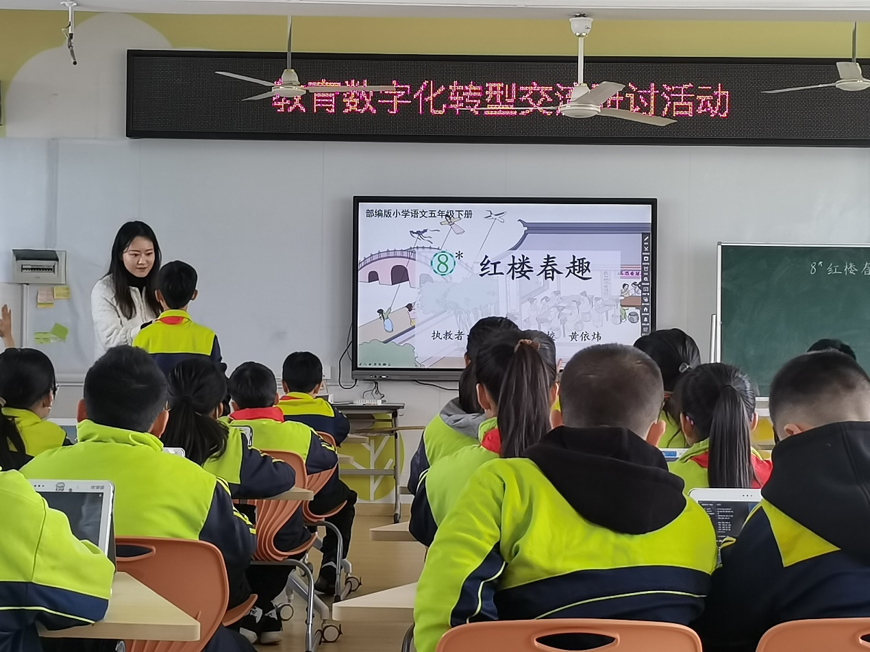 在语文平板课堂中,黄老师运用“优学派”中资源推送、展评讲解、视频播放等功能,将“优学派”灵活自如地运用在教学中,她鼓励同学们认真读课文体会人物形象,指导学生有感情地分角色朗读课文,邀请学生积极上台角色扮演,揣摩人物内心活动,为我们展现了一堂妙趣横生的语文课,引领我们重温经典,仿佛身临其境穿越到了《红楼梦》中的世界,充分体现了语文学科与信息化课程的深度融合。