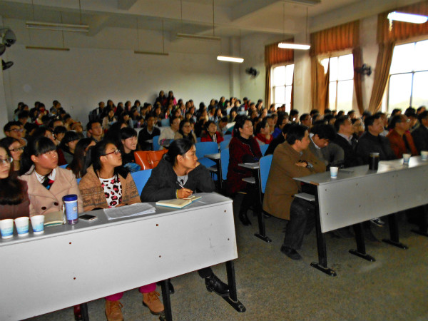 首先,副院长陈坤华对严文蕃教授作了隆重的介绍。严文蕃教授是美国波士顿麻州大学教育领导学系系主任、终身教授、博士生导师,美国教育研究会国家数据库研究小组主席,教育政策量化分析领域的大型数据与分析处理方面著名专家。严教授从学校建筑、课堂教学场景、课堂教学方式几个方面介绍了波士顿分校,体现了美国课堂教学以学生为中心的教学模式以及教育理念。
