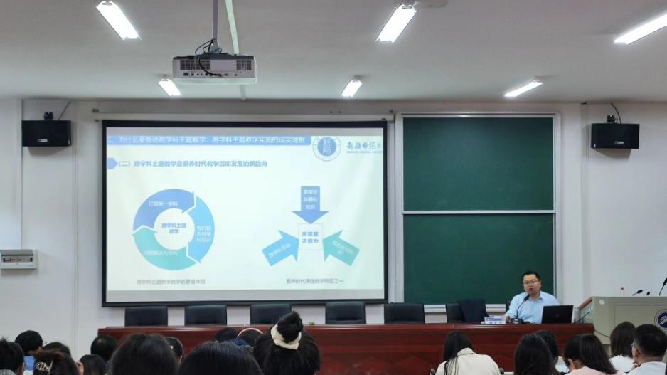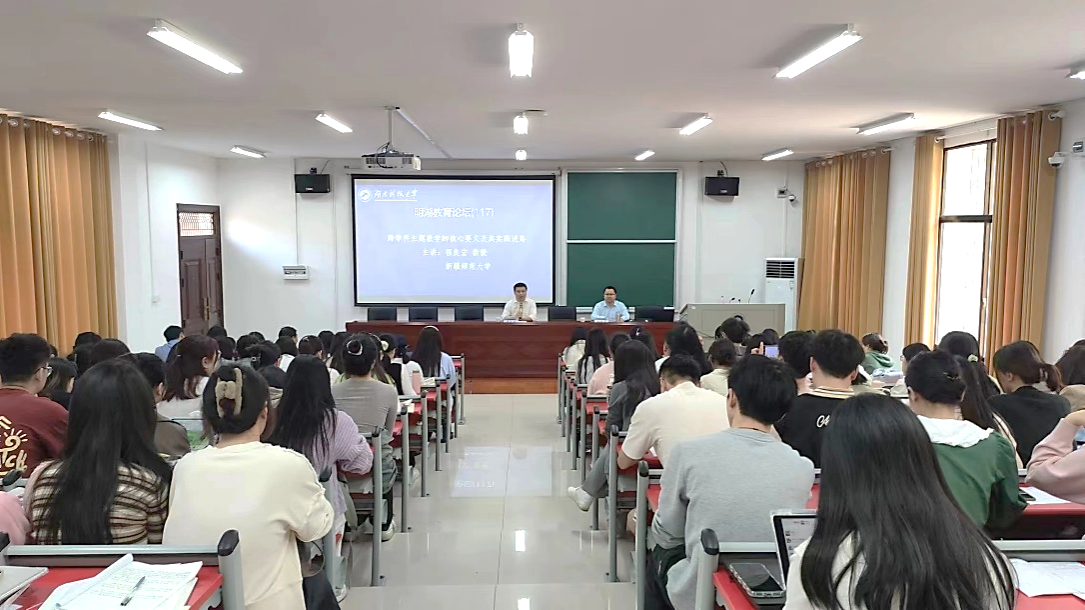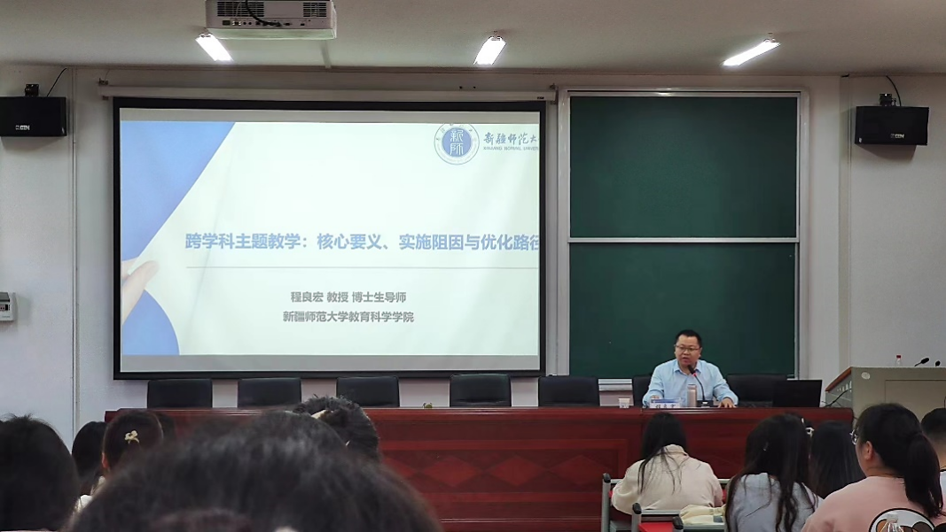 3月23日下午,新疆师范大学教育科学学院院长程良宏教授应邀莅临我院讲学,在昭潭书院第二教学楼102报告厅为师生带来题为“跨学科主题教学:核心要义、实施阻因与优化路径”学术讲座。讲座由教育学院、师范学院院长谭千保主持,教育学院教师代表,2022级和2023级研究生到场聆听。