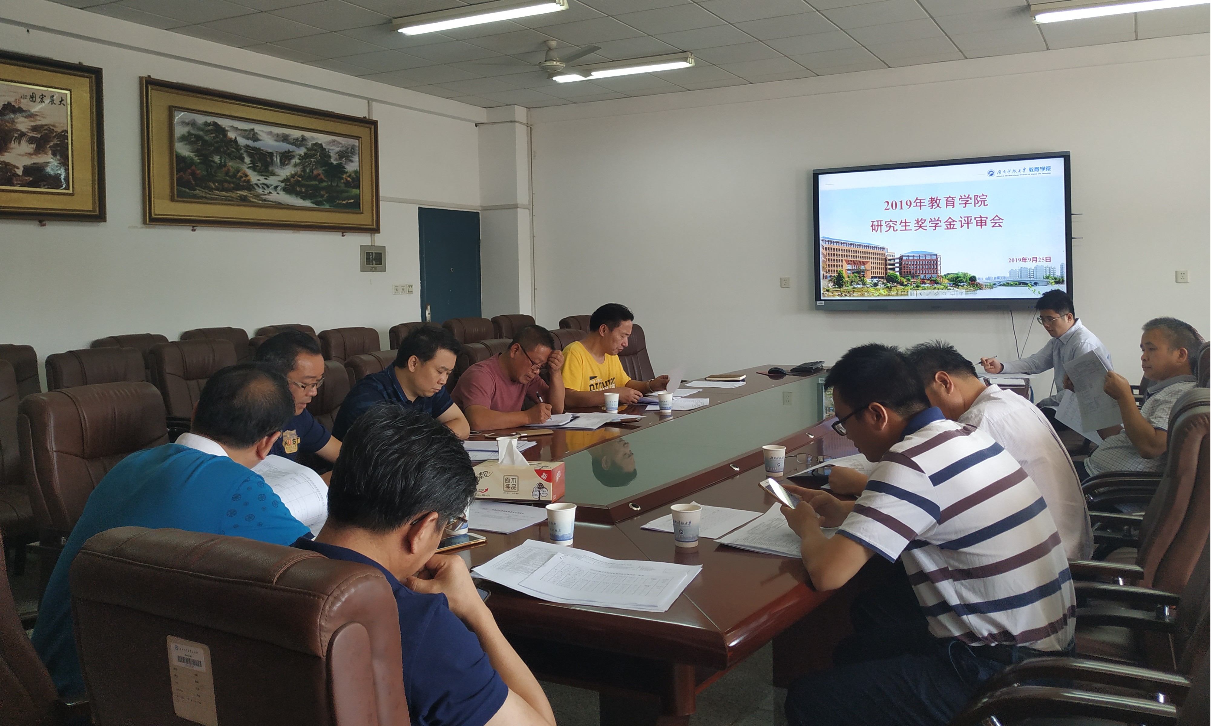 2019年9月25日上午,教育学院奖助学金评审委员会八教203召开2019-2020学年教育学院研究生国家奖学金、校级优秀研究生、校级优秀研究生干部、学业奖学金评审会议。