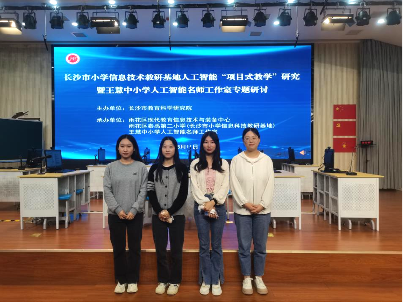 5月11日下午,教育学院21级现代教育技术专业领域硕士研究生赴长沙市雨花区泰禹第二小学参与“长沙市小学信息技术教研基地人工智能‘项目式教学’研究暨王慧中小学人工智能名师工作室专题研讨活动”。本次活动由长沙市教育科学研究院主办、长沙市雨花区现代教育信息技术与装备中心承办。