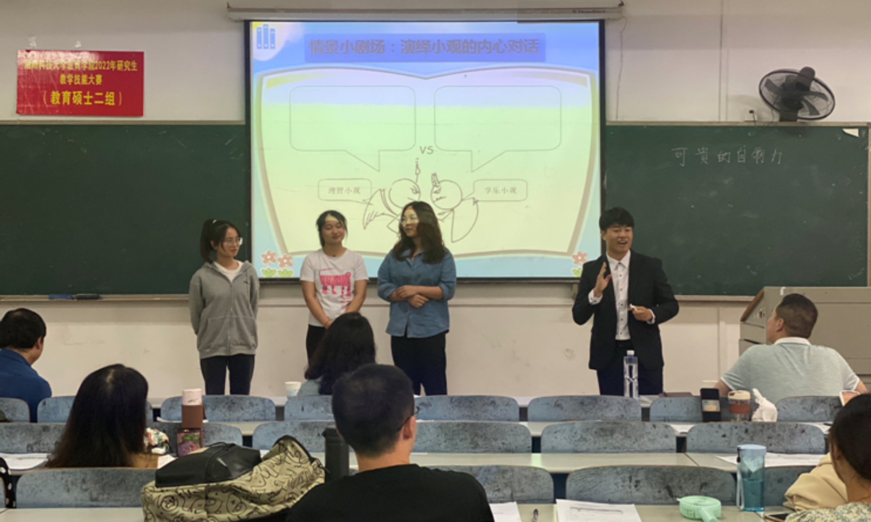 为进一步提升我院教育类研究生的教学技能、综合素质和就业竞争力。5月24日下午,我院第二届研究生教学技能大赛在第八教学楼3-4、3-5、3-6教室举行,来自教育学、教育管理、现代教育技术、小学教育、心理健康教育等专业的44名研究生参加了此次比赛。