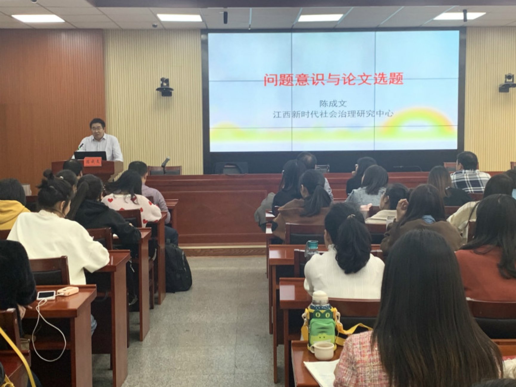 10月30日下午,江西财经大学江西新时代社会治理研究中心主任、首席教授、博士生导师陈成文教授做客“明湖教育论坛”,在八教308学术报告厅为我院师生带来题为《问题意识与论文选题》的学术报告。报告会由教育学院院长李海萍主持,学院部分教师、研究生、本科生到场聆听讲座。