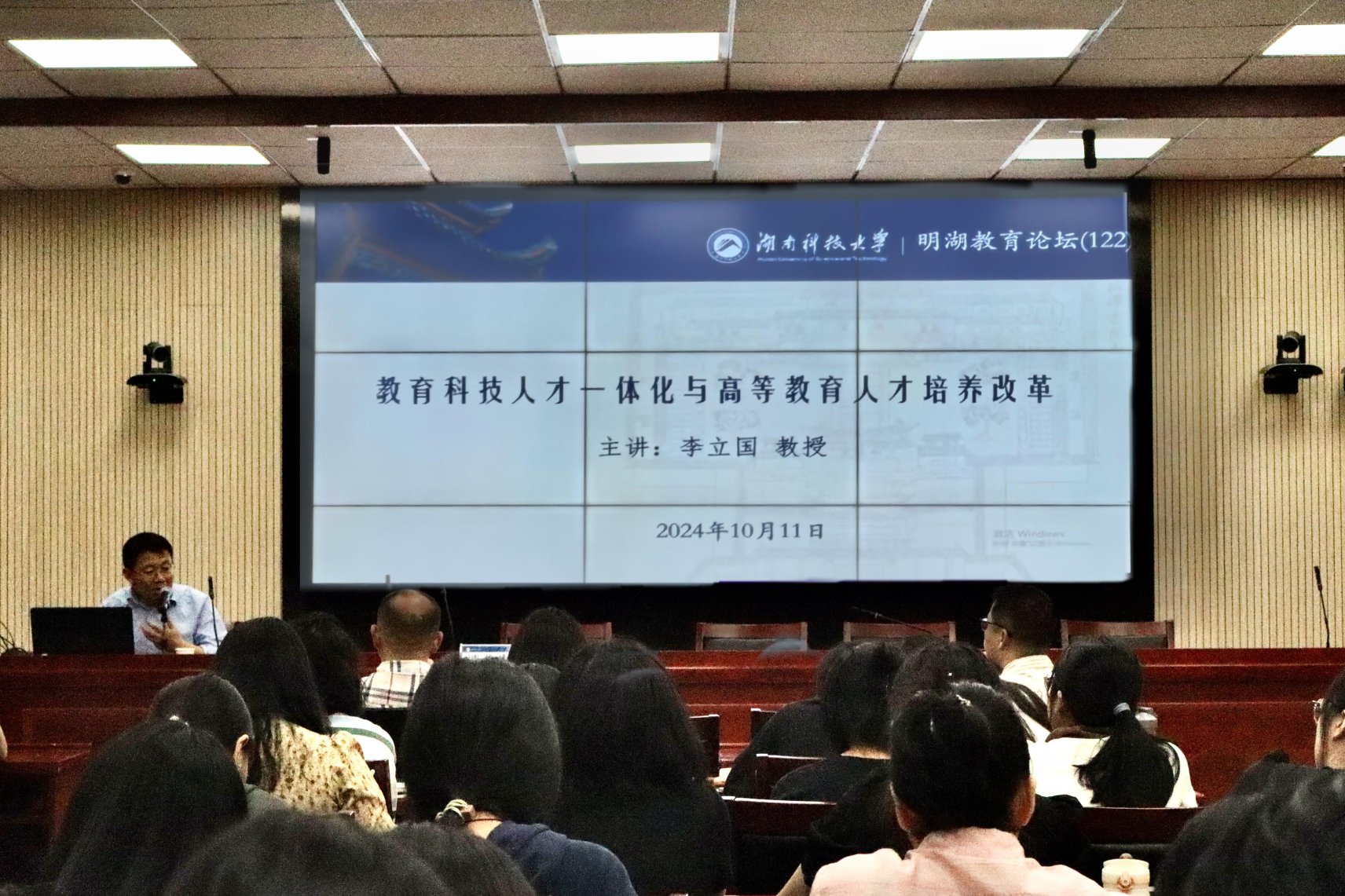 10月11日下午,清华大学教育研究院教授、教育部—清华大学教育战略决策与国家规划研究中心主任,教育部习近平新时代中国特色社会主义思想研究中心特约研究员李立国教授做客“明湖教育论坛”,在第八教学楼310报告厅为我校师生带来题为“教育科技人才一体化与高等教育改革”专题讲座。教育学院青年教师代表、研究生代表到场聆听。讲座由我校教学评建与教师发展中心主任周险峰教授主持。