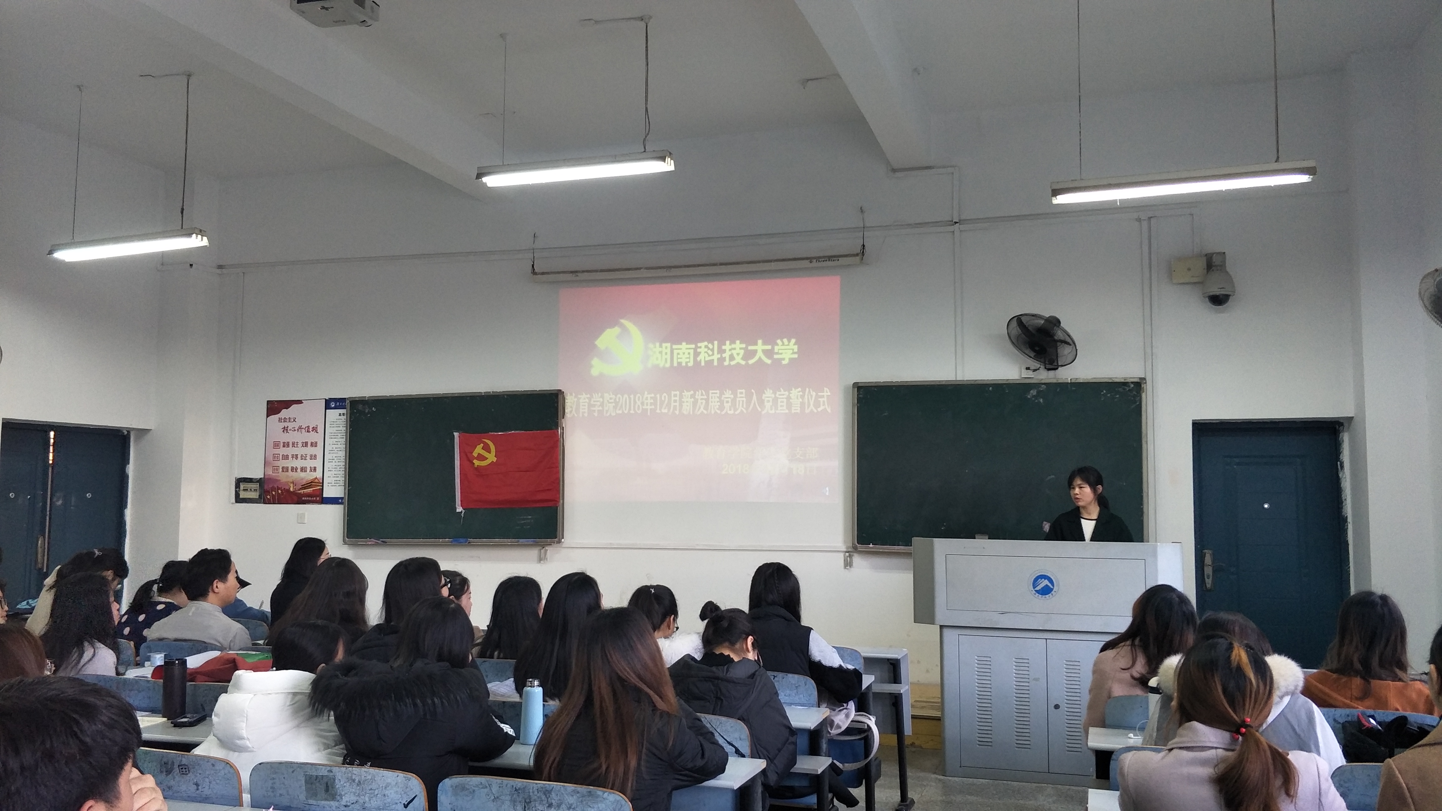 2018年12月18日14:00,教育学院2018年下11月新发展党员宣誓大会在第八教学楼2-4举行,教育学院研究生党支部书记曾玉云及全体党员出席本次会议,第四党支部书记胡银华主持本次会议。