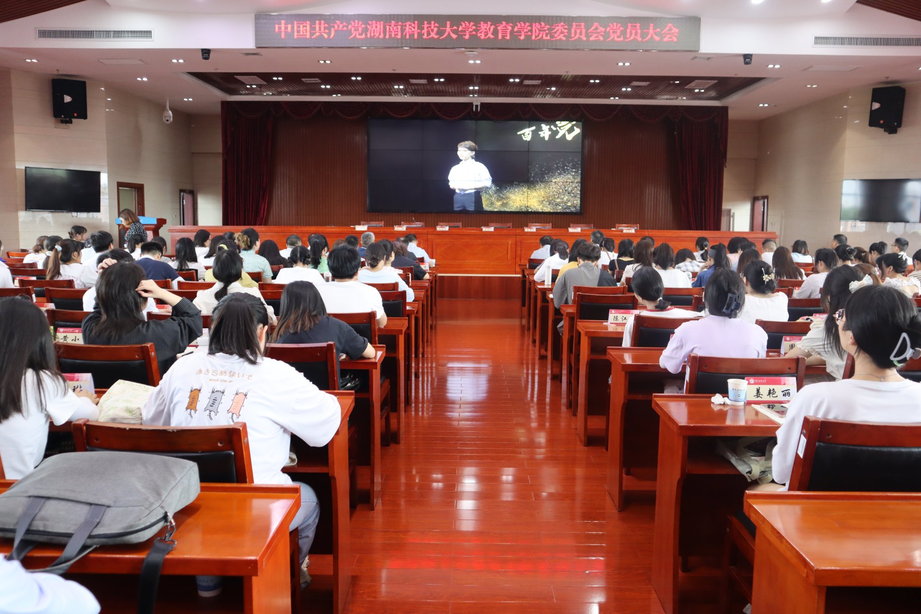 6月23日下午,中共湖南太阳成集团tyc122cc入口委员会第五次党员大会在立德楼A附楼五楼报告厅召开。大会由院党委副书记刘婕同志主持,校党委委员周智华,党办、校办副主任李洪华出席会议,教育学院全体党员参加会议。
