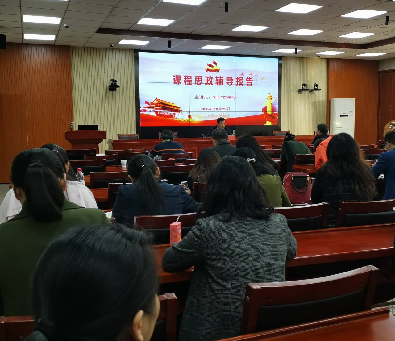 2019年10月29日下午,校纪委书记刘宇文教授在第八教学楼308学术报告厅为教育学院参加教职工政治学习的全体教职工讲党课,主题为“课程思政辅导报告”,院党委书记李炳煌主持。
