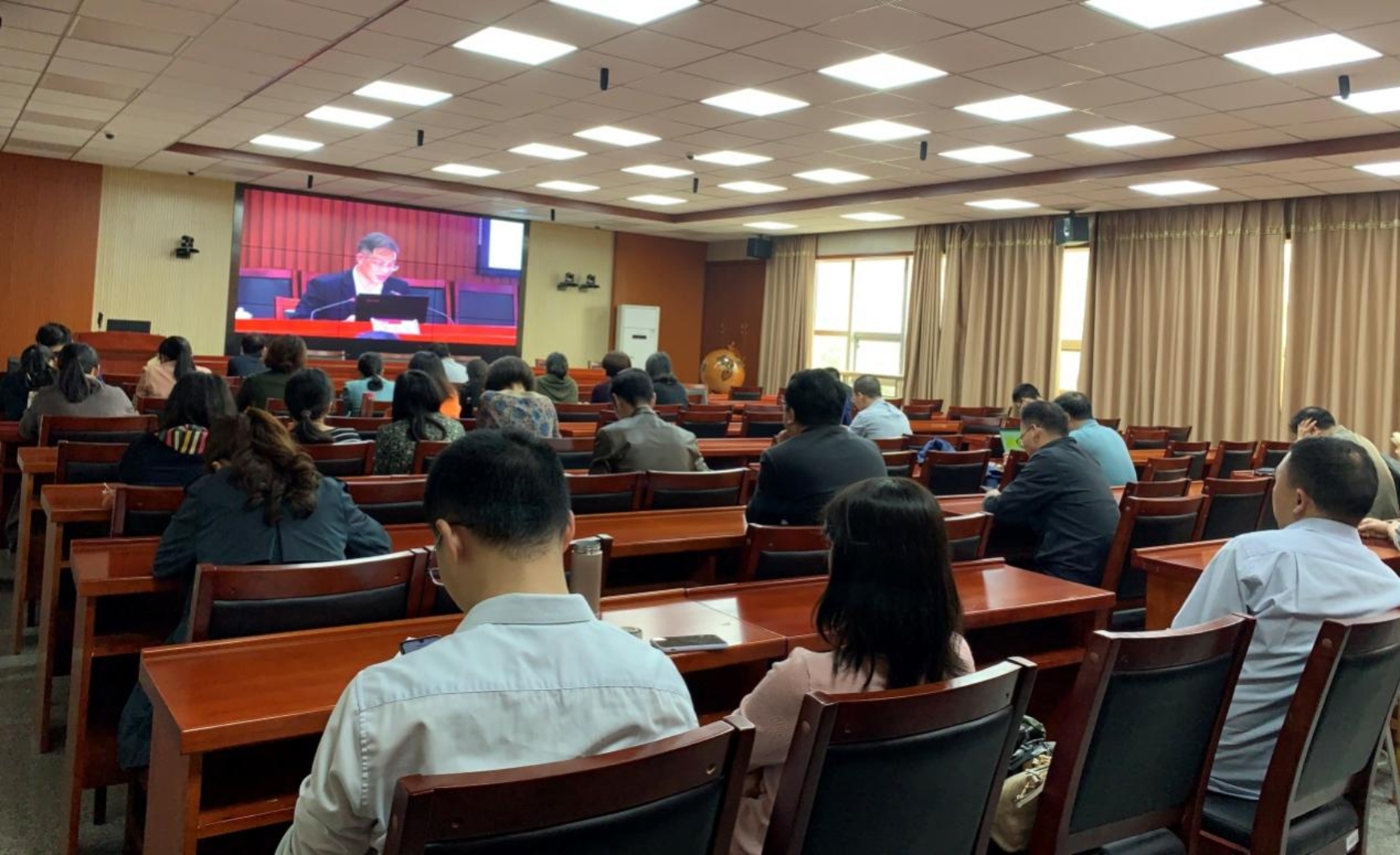5月25日下午,教育学院组织师生收看《湖南科技大学第三次党代会精神宣讲报告会》网络直播。报告会由校党委书记唐亚阳主讲,校长朱川曲主持。学院设5间分会场,共有684人参与了集中收看。