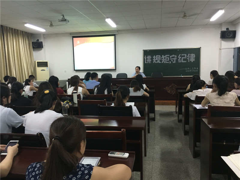 为了让各党员们进一步坚定信念,做一名“讲规矩 守纪律”的合格党员。2016年6月24日晚上8:00,教育学院在第八教学楼408会议室开展“两学一做”之“讲规矩 守纪律”专题党课,由教育学院党委副书记王伟清同志主讲,全体党员参加此次学习。