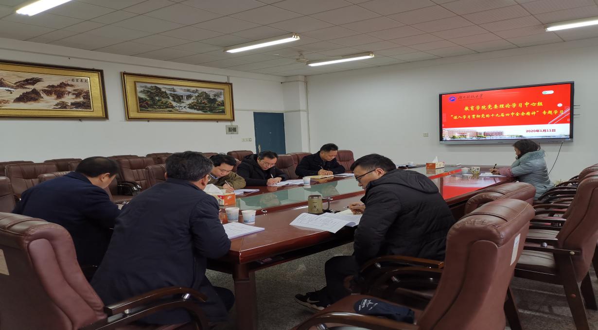 2020年1月11日,院党委理论学习中心组在第8教学楼208室开展“深入学习贯彻党的十九届四中全会精神”专题学习。会议由院党委书记李炳煌主持。