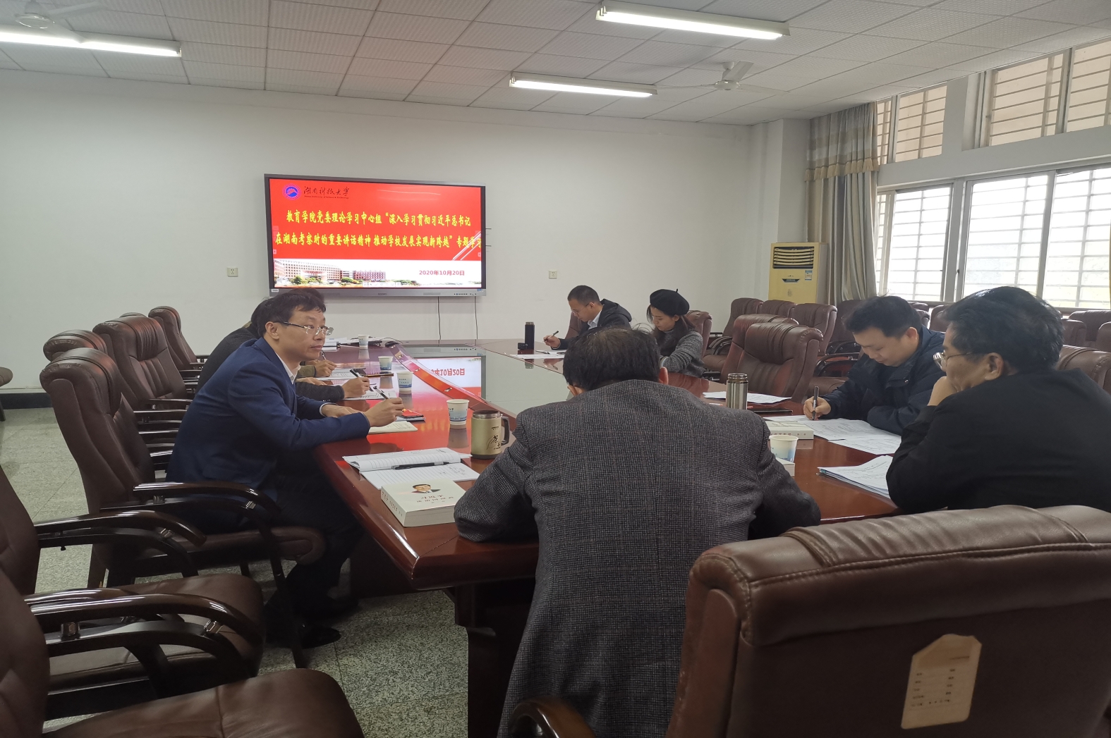 2020年10月20日,学院党委理论学习中心组在8教208室开展“深入学习贯彻习近平总书记在湖南考察时的重要讲话精神 推动学校发展实现新跨越”专题学习。会议由院党委书记李炳煌主持,学校学工部部长尹风雨巡听督导。