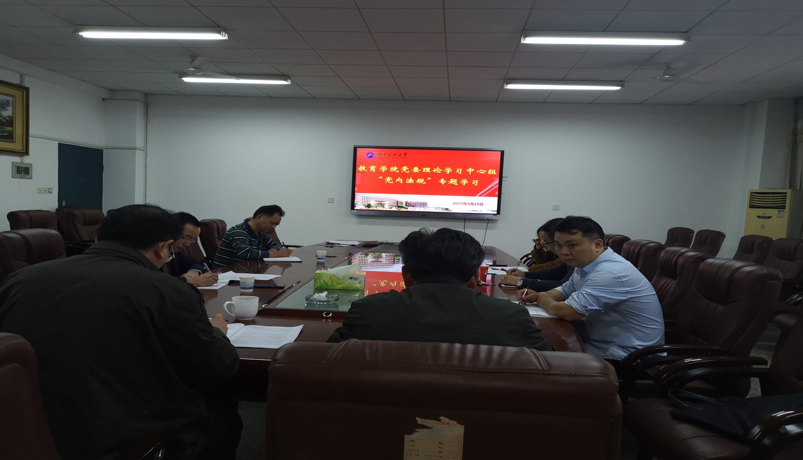 2020年9月29日,学院党委理论学习中心组在8教208室开展“党内法规”专题学习。会议由院党委书记李炳煌主持。