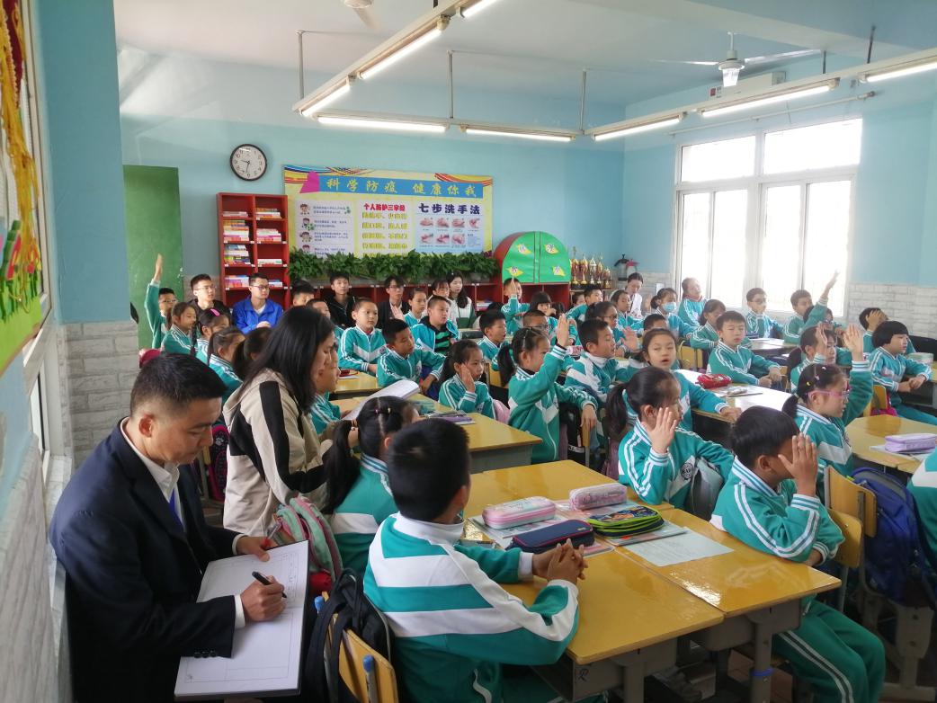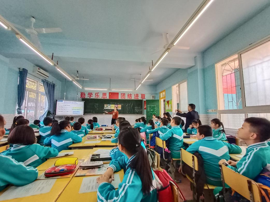 20201022日上午九点,株洲市八达小学赵腾达校长为加深湖南科技大学教育学院的实习生们对于“学共体”(学习共同体)的认识和感受组织同学们进入向娟老师的学共体英语常态化课堂观摩学习和研讨