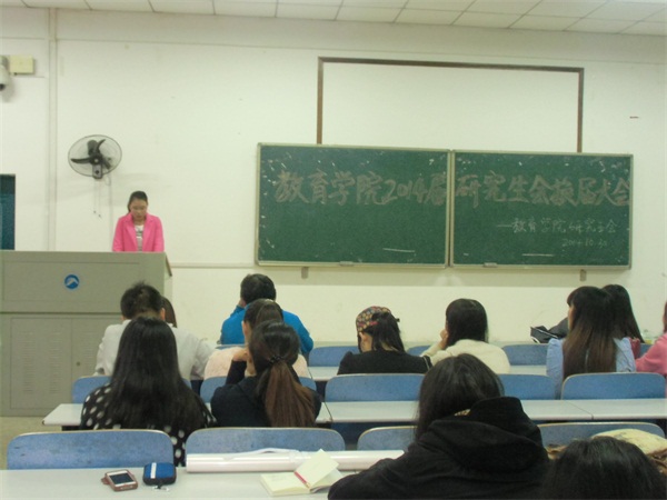 2013届教育学院研究生会主席张苗就2013-2014年的工作作述职报告。她首先回顾了在过去一年中研究生会在王书记和李涛老师的带领下成功组织的具有研院特色的各项学术研究活动和文娱活动;对于工作中的缺失表达了自己歉意的同时希望新一届研会干部能“百尺竿头更进一步”;最后借用汪峰的歌词表达了自己最真挚的祝愿和鼓励。2013届教育学院研究生会团委副书记侯珊也在她的工作总结报告中实事求是地总结了取得的成绩和不足,并提出了中肯的建议。