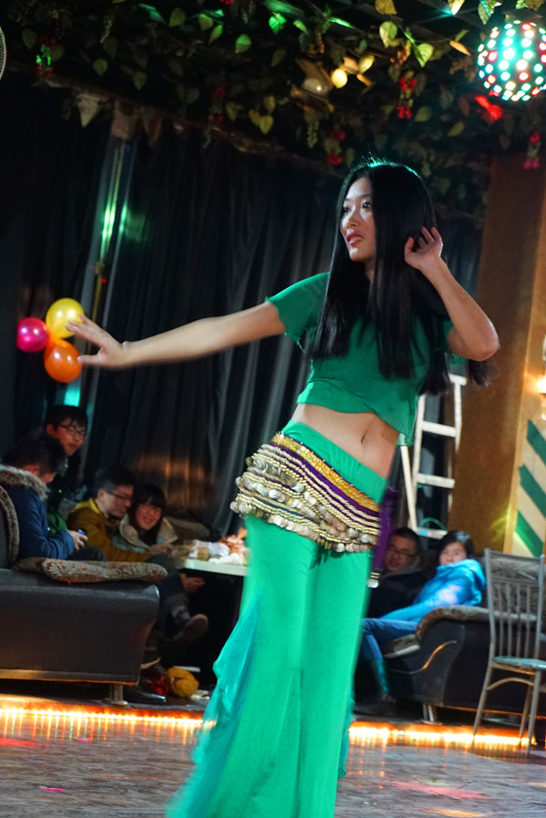 此外,刘西子等同学带来的舞蹈《天竺少女》、云亚荣同学的肚皮舞《印度新娘》以及现场的三曲交谊舞将晚会一次次推向高潮。晚会间穿插的夹瓜子和踩气球等游戏更是别出心裁,吸引大家积极参与,加油声、喝彩声此起彼伏,现场变成了一片欢乐的海洋。