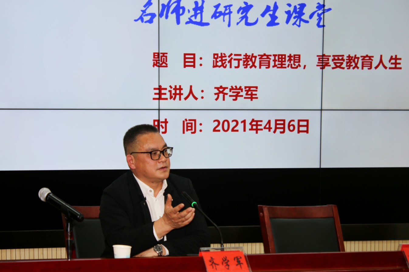 4月6日下午,湖南省特级教师、湘潭县第一中学校长齐学军应邀莅临我校,在第八教学楼308学术报告厅为我院师生带来“践行教育理想,享受教育人生”的主题讲座。讲座由教育学院党委书记李炳煌教授主持,教育学院教师、研究生和本科生代表到场聆听。