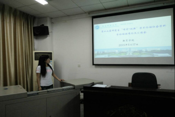 报告会上,马克思主义学院王艳薇、体育学院朱玉琼、艺术学院张潇文、教育学院赵红莉、教育学院杜薇五位同学分别做了题为《大众化视域下的习近平全面从严治党思想论析》、《长株潭城市群休闲体育旅游发展SWOT分析》、《视觉文化语境下的流行音乐生产》、《“新生代”中学代课教师的发展困境及其突围策略》、《被教师:中小学教师身份认同的迷失与重构》的论文汇报。