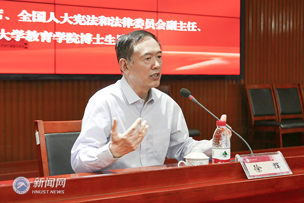 唐亚阳表示,在全国上下深入学习习近平总书记“七一”重要讲话、开展党史学习教育之际,学校特别邀请民盟中央专职副主席、浙江大学教育学院博士生导师徐辉教授来校作专题报告。徐教授对我国当前教育立法的最新进展及趋势有着专业且深入的研究,对教育战线如何进一步依法治教,高等学校如何进一步探索依法治校有着独到的阐释与见解,希望与会师生认真学习,主动思考,及时了解并把握我国当前教育立法的总体态势,并将所学所思所获运用于学习和工作中,全面推进学校“353”战略落地见效,不断推进学校治理体系与治理能力现代化。