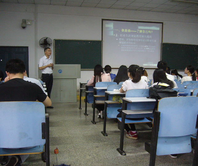 2015年7月9日上午,株洲八达小学赵腾达校长来我院讲学,为同学们在择业方面上了精彩的一课。本次活动由教育学院陈慧青副院长主持。