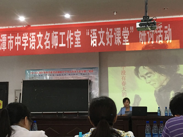 霍奇艳老师带来“衔泥带得落花归——我的作文教学困惑与探索”报告,以2016年湘潭市中考作文题为例分析了学生写作现状和教师写作教学现状,阐明了作文教学的三大困惑,即:学生不想写、没得写和不会写。然后从理论和实践两方面一一探讨解决这三大困惑的办法。