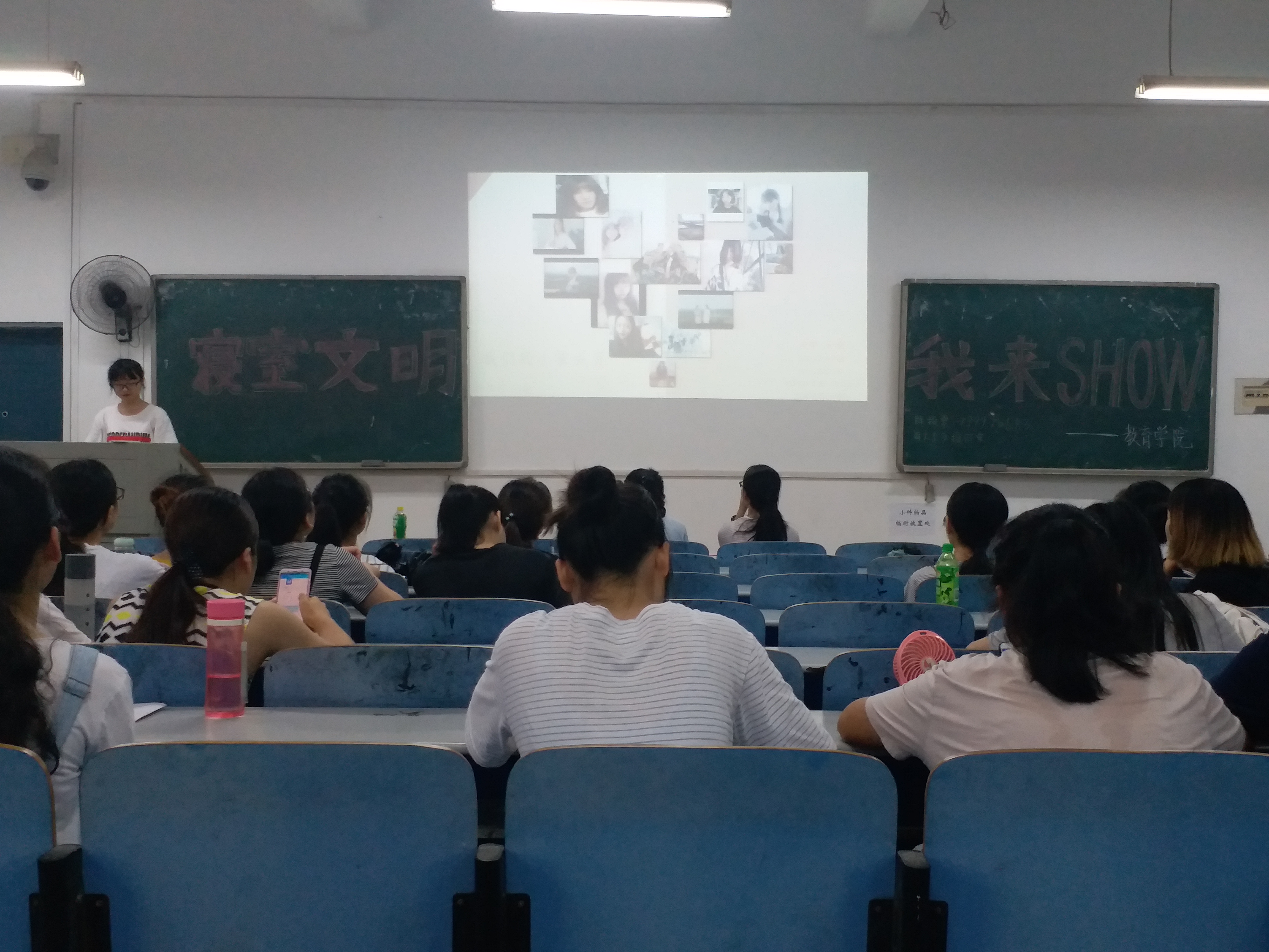 2018年6月19日15:00,由教育学院团委学生会宿舍管理部主办的第十二届宿舍文明创建活动之寝室文明我来show在八教1-5举行,第二十届团委学生会副主席曾根凤及17级各班代表参与本次评选活动。