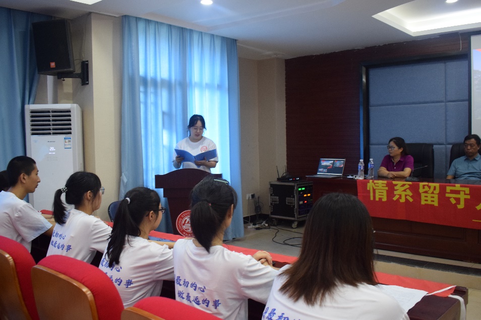 接着,支教团负责人詹卓铭对本次三下乡活动的前期准备、活动实施及后续任务进行了详细的汇报。支教团教员代表田玺如代表全体教员向启航学校的校领导们表示诚挚的感谢,感谢他们对此次支教活动的大力支持。