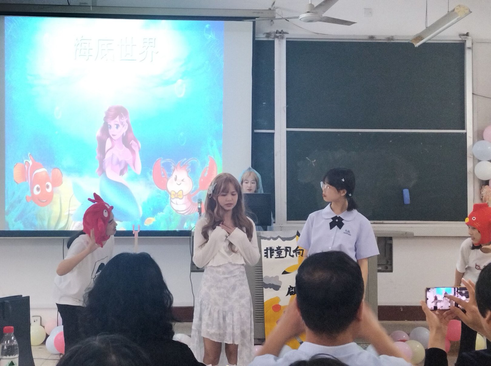 各组参赛选手按抽签顺序依次登台,从《我不上你的当》《屏幕之外》到《养鸡场奇妙夜》,从《五星的故事》到《猎人海力布》,参赛者们深厚的台词功底、生动的演绎让师生发出一阵阵笑声和赞叹,别具特色的道具也为表演增加了儿童文学独有的特色。更有惟妙惟肖的配音表演《小王子》《灰姑娘》,让同学们仿佛置身于片段情境之中,感同身受。参赛选手们真挚的情感,彰显了较强的儿童文学创作力和表现力。