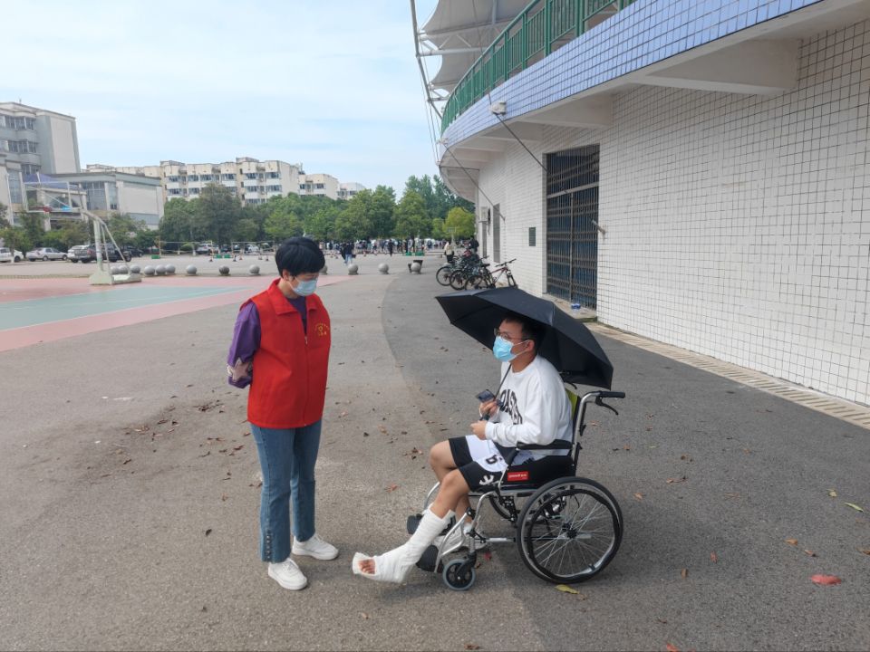 针对行动不便的同学,由志愿者刁英超全程陪同,以协助其完成核酸检测。我院领导也来到同学身旁送来亲切问候,充分展现了教育学院大家庭的温暖。