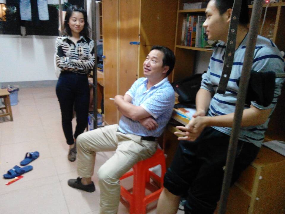 22:00整王书记和14级辅导员滕茜茜老师在团委学生会主席吴厚涛、团委第一副书记汤思维的陪同下,来到了学生寝室。在七区女生寝室,王书记亲切的询问了学生在校动态,问及了学生对学校环境、大学生活是否适应等。当有同学提到虫子多时,王书记告诉大家要做好防虫措施。王书记十分关心同学们的学习,他强调学习是大学最重要的一部分,一些较难的科目要下功夫,刻苦钻研。此外,王书记也欣然的与同学们聊起了自己的一些趣事,引起了在场所有人一阵阵笑声。