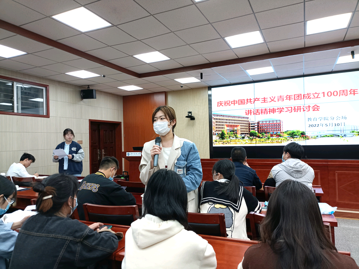 “目光所至皆为华夏,团星闪耀皆为信仰,这是我们的时代,身后有亿万星辰闪烁,我们要坚定不移听党话、跟党走,以群星闪耀般紧紧围绕在党中央周围,围绕在总书记周围。”院学生会执行主席杨淑雯感叹到。“正如总书记所讲,越是往前走、向上攀,越是要善于从走过的路中汲取智慧、提振信心、增添力量。忘记即是背叛,我们要时刻记得自己团员的身份奋进向前!”院团委学生第二副书记孟赵阳同学说到。团支书代表古丽尼格尔?买买提谈到,“听了总书记的讲话,我与大家一样感概万千,没有中国共产党,就没有中国共青团,共青团历经百年沧桑而青春焕发,新时代的篇章将由我们共同书写。”“清澈的爱只为中国,我们应该吃苦在先,享乐在后,努力成为这样的青年!”“请党放心,强国有我,我们应当用青春之青春铸就青春之强国,青春之青春铸就青春之未来!”团员代表刁英超、蒋立同学说到。