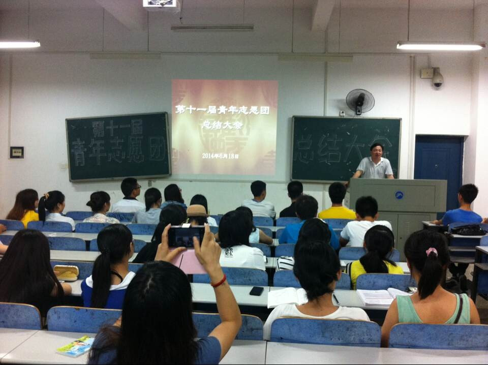 2014年6月18日19:30,教育学院第十一届青年志愿团总结大会在八教2-2举行,莅临此次大会的嘉宾有教育学院党委副书记王伟清教授、团委学生会主席团成员,此外,全体志愿者和学生代表参加了此次大会。