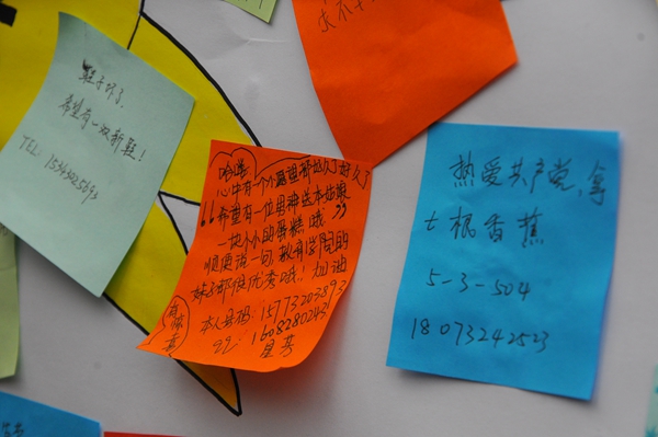 由我院第十五届团委学生会精心制作的视频在课堂间隔的10分钟播放,男生们真诚的寄语,李涛老师幽默风趣的“星星”祝福语,学生会成员真心的表演,都轻轻地走进了大家的心坎里。在采访中,来自13级应心2班的谭敏同学说:“最后那个熊猫和QQ宠物的对话最有趣了!真的感受到了那中暖暖的感觉。”目光投向电信路口,没错,那就是教育学院团委女生活动部精心策划实施的“女生,我想对你说”、“女生心愿男生帮”等活动也在倾情进行。粉色蓝色的气球装饰着少女的心,不仅有男生自愿抽取3月6日晚下寝收来的愿望卡去实现幸运女神的愿望,还有很多人激动地参与有奖竞猜。令人惊讶的是电视台的主持人和记者来采访了这次活动的经过。我们看到的比这雨天的水更多的是学生们的幸福笑容。晚上还有“星使”下寝送贺卡,给教育女神们睡前的感动。