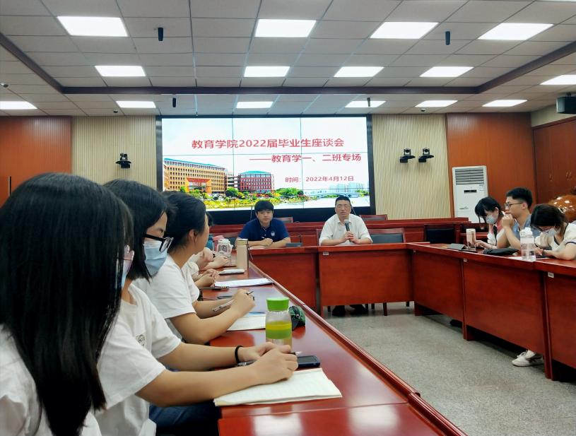 座谈会伊始,老师们首先从疫情形势、考研录取、考编竞争等方面向同学们介绍了今年就业的整体形势,随后由各位同学代表发言。针对教育学专业,当前学生的主要困惑在于部分招聘对专业背景有所限制,且编制类教师招聘的公告发布比较晚,小学教育专业学生也面临类似的问题。针对应用心理学专业,部分同学决定二战,其他同学也在积极投递简历,但回复的较少。