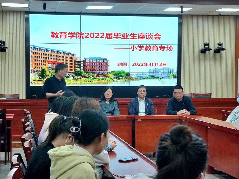 为扎实推进我院毕业生就业工作,切实帮助学生解决就业困惑、打开就业思路,4月7日至13日,教育学院(教育科学研究院)党委书记李炳煌、副书记刘婕、学工办主任李涛、团委书记练素华、兼职辅导员包尚飞联合各系部主任、班主任老师,分专业组织毕业生召开就业座谈会。