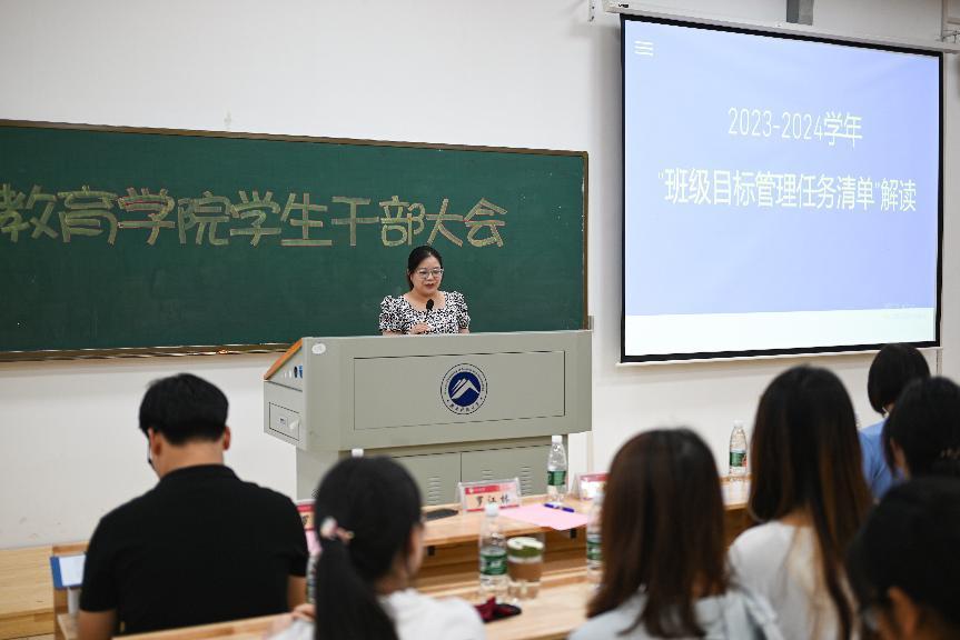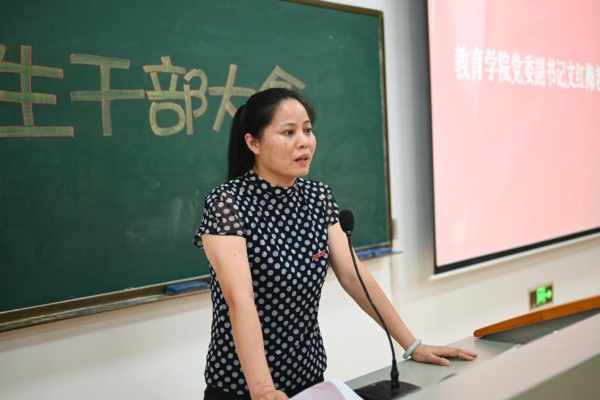 9月5日下午,教育学院干部大会在敏行楼C512举行,教育学院党委书记李炳煌、党委副书记文红梅、学工办全体老师及学生干部参加,会议由欧树宏老师主持。