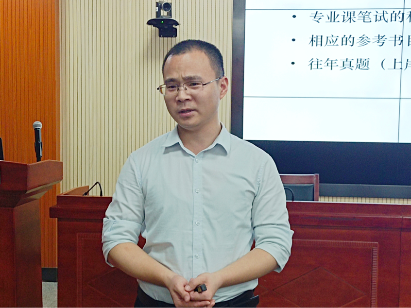 讲座伊始,张晓报对今年考研形势进行了细致的分析,同时祝贺在研究生考试中成功过线的同学。他讲到,考研初试与复试有很多的共性问题,过线的同学依然要重视复试环节,在精神上和行动上都不能懈怠。他从“为什么要重视考研复试”、“考研复试有哪些内容”、“考研复试要准备什么”、“考研复试笔试(考研初试)如何拿高分”、“考研复试面试如何脱颖而出”这五方面进行讲解,鼓励同学们抱着积极进取、平和自信的心态准备复试,争取取得优异的成绩,进入理想院校。