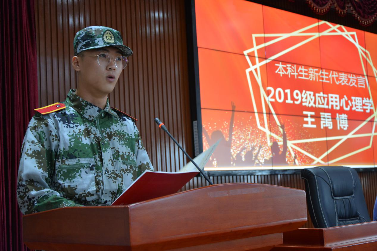 新生代表19级本科生王禹博认为应该怀着勤学、严谨 、求实的学习心态,将自身价值融入伟大的中国梦之中,秉承唯实惟新、至诚致志的校训,不断增长学识保持乐观开朗的良好心态,既要彰显个性又要做到内敛不张扬,尽早适应大学生活节奏,更要珍惜时光,努力让自己成为国家之人才。