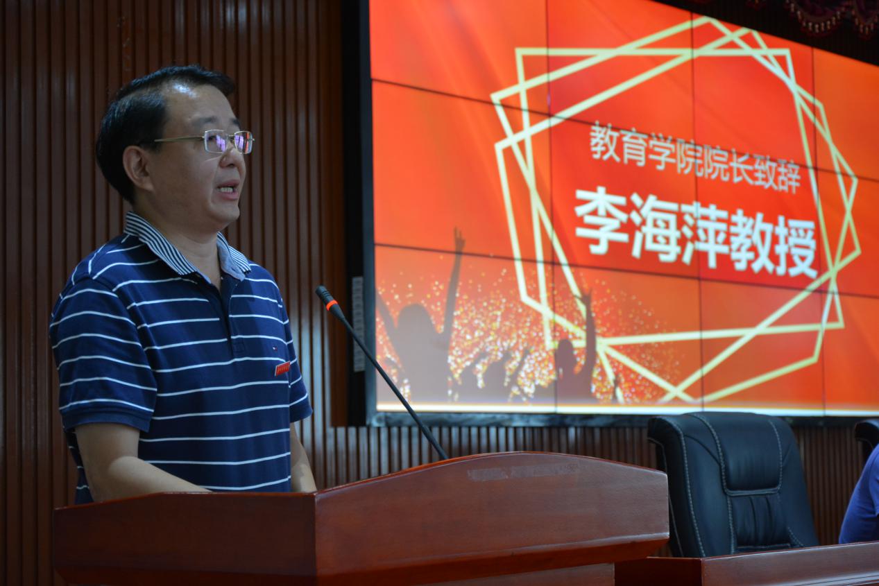 出席此次典礼的领导、老师有校社科联副主席谭建平、教育学院院长李海萍、教育学院党委书记李炳煌、教育学院副院长谭千保、教育学院党委副书记刘辉亚、教育学院教育硕士现代教育技术专业领域负责人王伟清、教育信息技术学系负责人张进良、学院党政办主任詹玮、教务办负责人周文杰、研究生负责人林艳阳、实验中心主任马培锋以及学工办和研究生办全体老师、各新生班班主任。全体2019级本科生、研究生参加此次典礼。开学典礼由教育学院党委书记李炳煌主持。