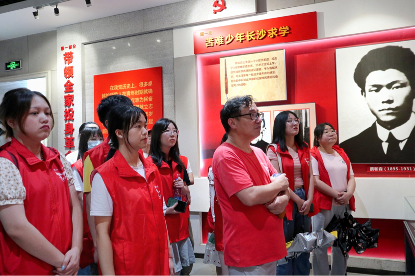 上午八点,趁着天气较为凉爽,志愿团团员赴蔡和森纪念馆参观,重温“中国共产党”名称提出者蔡和森及其家人的革命斗争事迹。蔡和森同志用其短暂的一生谱写了一首忧国忧民、救国救民的英雄赞歌。毛泽东曾对他做出评价:一个共产党员应该做的,和森同志都做到了。在讲解员的带领下,队员们深切缅怀革命先烈的英雄壮举和不朽功绩,追忆初心使命,凝聚奋进力量。和森舍身取义为天下,我为和森家乡献爱心。