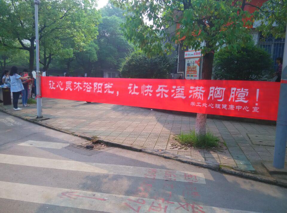 2015年5月25日8时,“感恩生命,你我同行”由教育学院危机干预部联合508心理咨询室合力承办的心理健康月主题活动于在电信路口预行,以“关爱自己,从睡眠开始”切入生活,海报、心漫画、路标、评估问卷……多形式践行“终极关怀”。