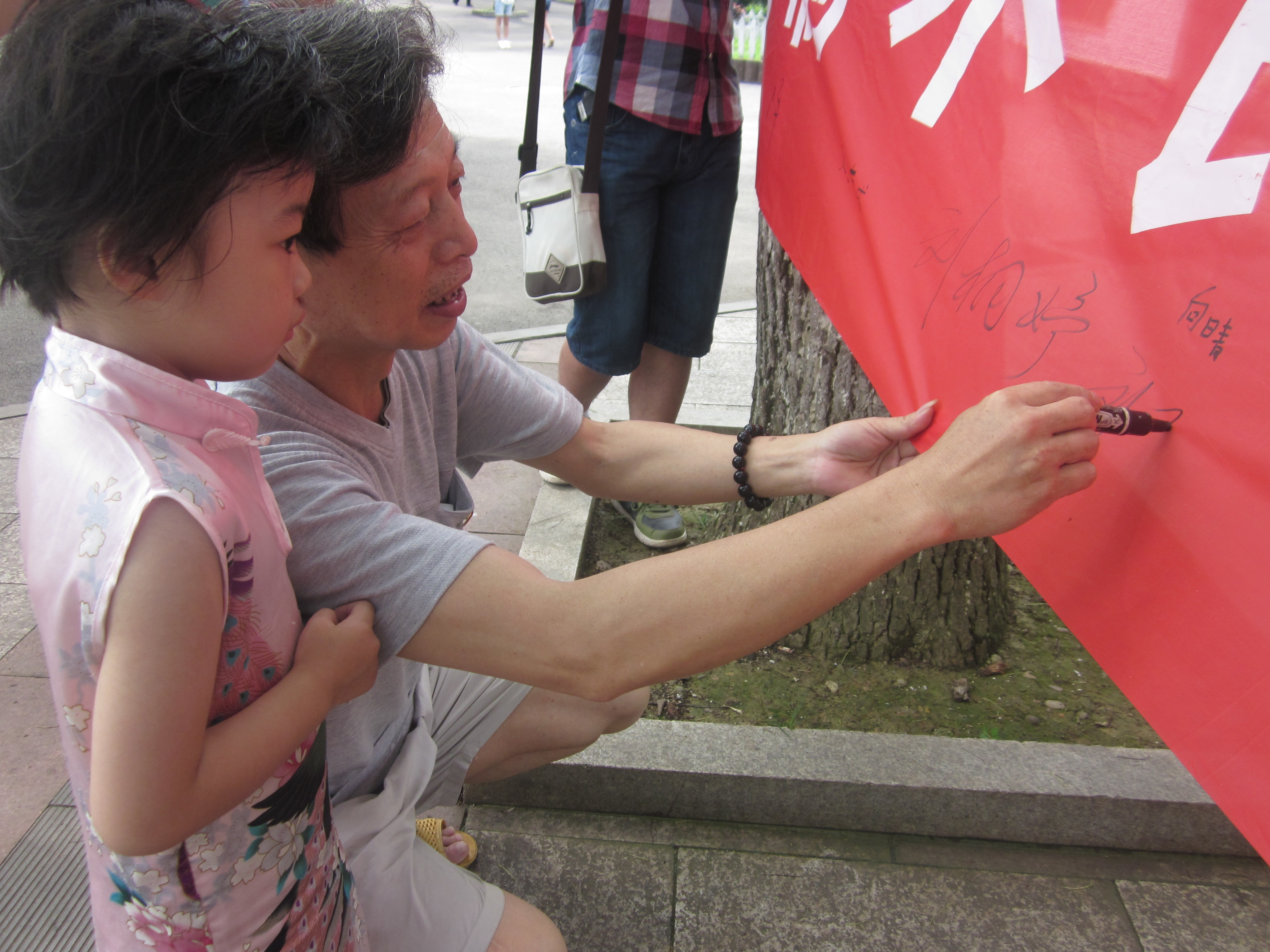 从活动开始到结束,签名的人络绎不绝,从三岁孩童到八旬老人都纷纷参与签名承诺。