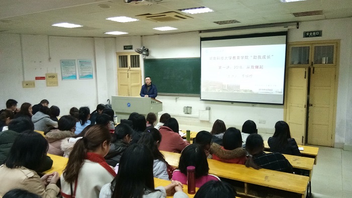 ?2018年3月6日,教育学院在第十教学楼附一楼103室开展"规划人生,上好大学,励志成才"的学生成长辅导新模式——“助我成长”第一讲——2018,从我做起,由教育学院党委书记李炳煌教授主讲,党委副书记刘辉亚、全体辅导员及教育学院的全体学生党员、全体学生干部参加会议。