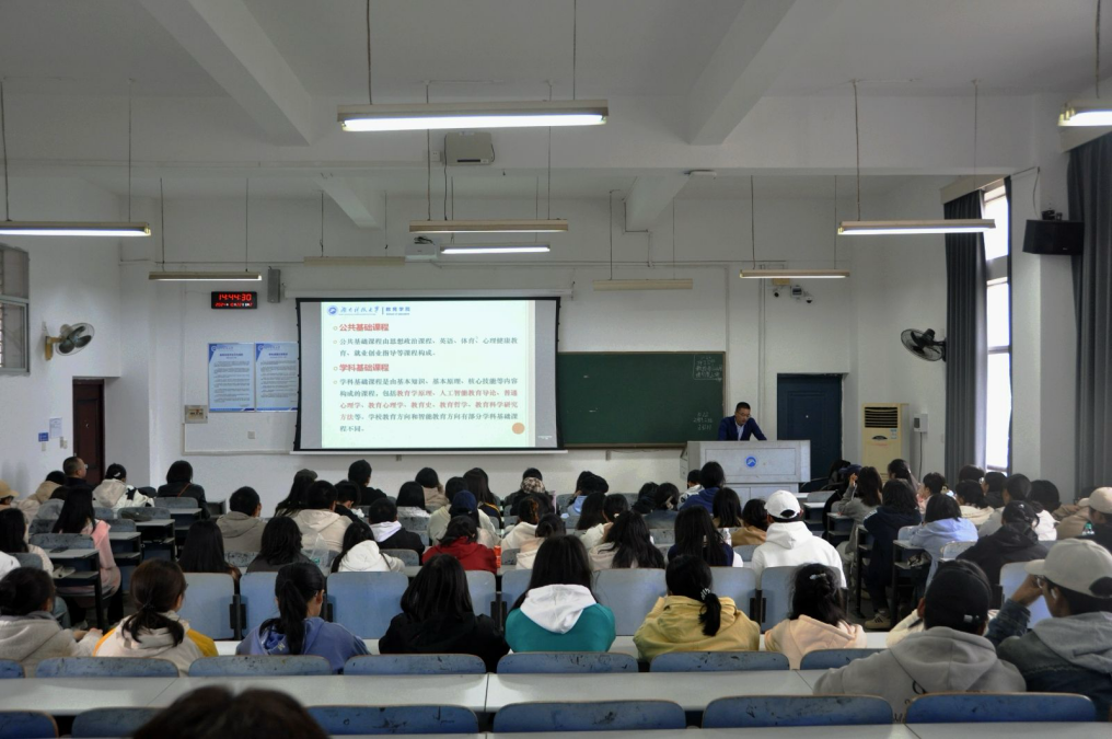 为深化2024级本科生对所学专业的认知,10月22日,我院在第八教学楼开展了系列专业教育活动。教育学院院长谭千保、教育技术学系主任刘斌、教育学系主任唐汉琦主讲,2024级本科生参与。